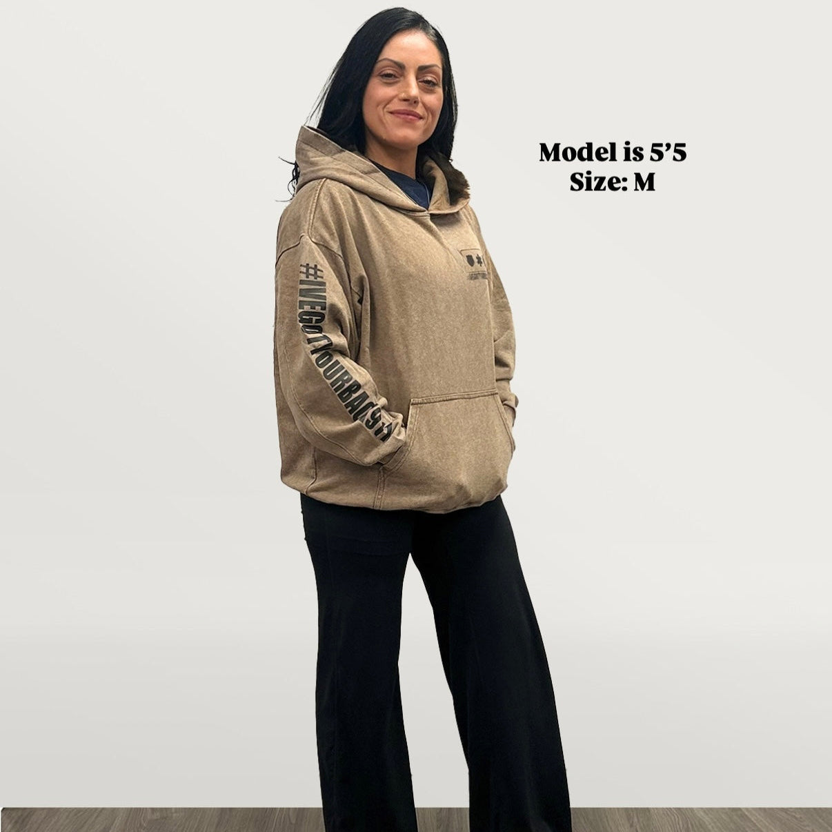 These hoodies are meant to fit slightly loose. We recommend sizing up if you want a more oversized fit. Also if you are tall and have long arms we recommend sizing up.